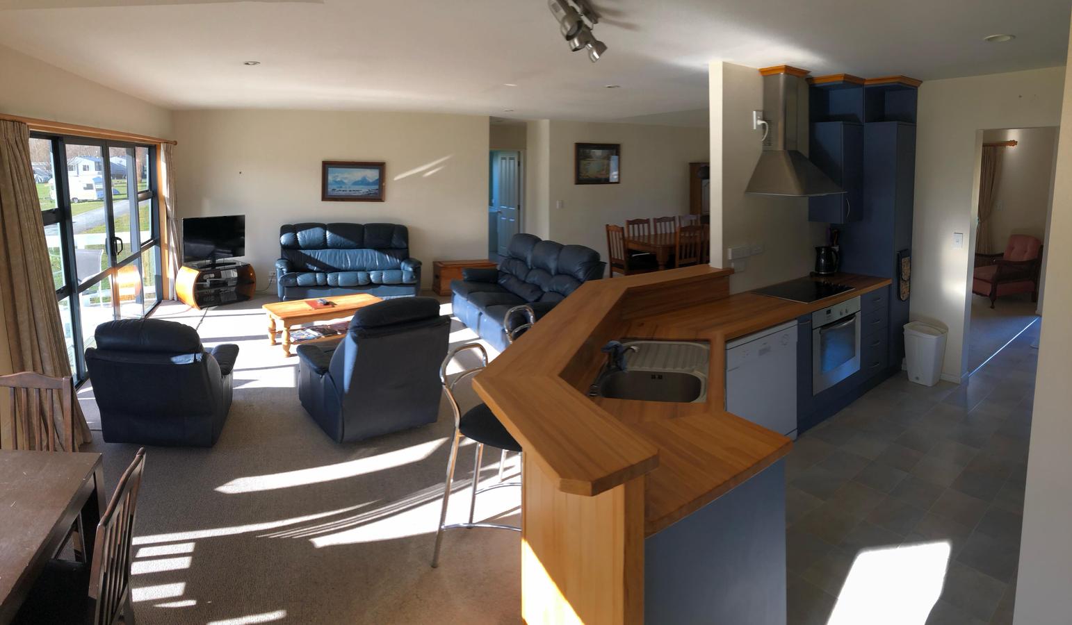 Come and stay in our spacious 3-bedroom house with views overlooking the lake and up to the mountains. Ideal for a family holiday, summer or winter. The house has a fully equipped kitchen, 2 bathrooms, laundry facilities, and deck to sit and watch the sun set. At the back of the house sliding doors open onto an enclosed area with a BBQ, chiminea and seating area.